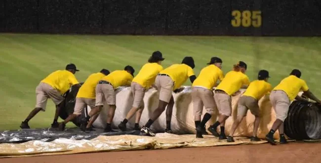 En San Francisco de Macorís, las mismas condiciones condiciones climatológicas obligaron a posponer el partido entre Estrellas Orientales y Gigantes del Cibao.