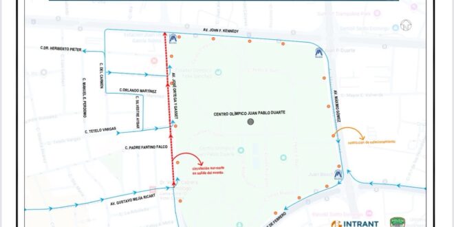 Santo Domingo. – El Gabinete de Transporte, en coordinación con el Instituto Nacional de Tránsito y Transporte Terrestre (INTRANT) y la Dirección General de Seguridad de Tránsito y Transporte Terrestre (DIGESETT), informó la activación de un plan especial de movilidad debido al evento masivo que tendrá lugar el viernes 21 y sábado 22 de noviembre en el entorno del Centro Olímpico Juan Pablo Duarte.