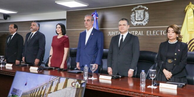 Santo Domingo.– En un acto que marca el inicio formal de la renovación del documento de identidad nacional, el presidente Luis Abinader y la primera dama Raquel Arbaje recibieron este lunes de manos de la Junta Central Electoral (JCE) la primera cédula de identidad y electoral.