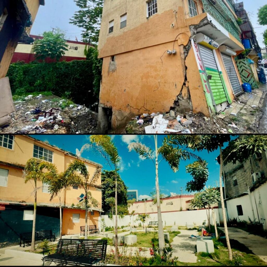 Además, se ejecutaron acciones de recuperación urbana y habitacional, que incluyeron la demolición preventiva y reconstrucción de un edificio de tres niveles con riesgo de colapso, así como trabajos de remozamiento de viviendas en estado crítico, garantizando condiciones seguras y dignas para las familias beneficiadas.