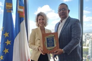 La embajadora de Francia en República Dominicana Sonia Barbry recibió la placa que acredita al …